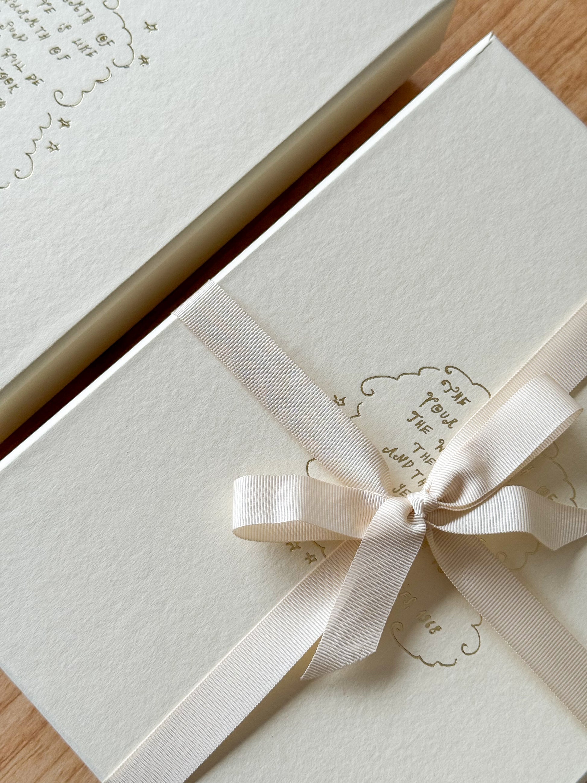 Para presentear, você pode selecionar nossa caixa, que comporta até dois cadernos.