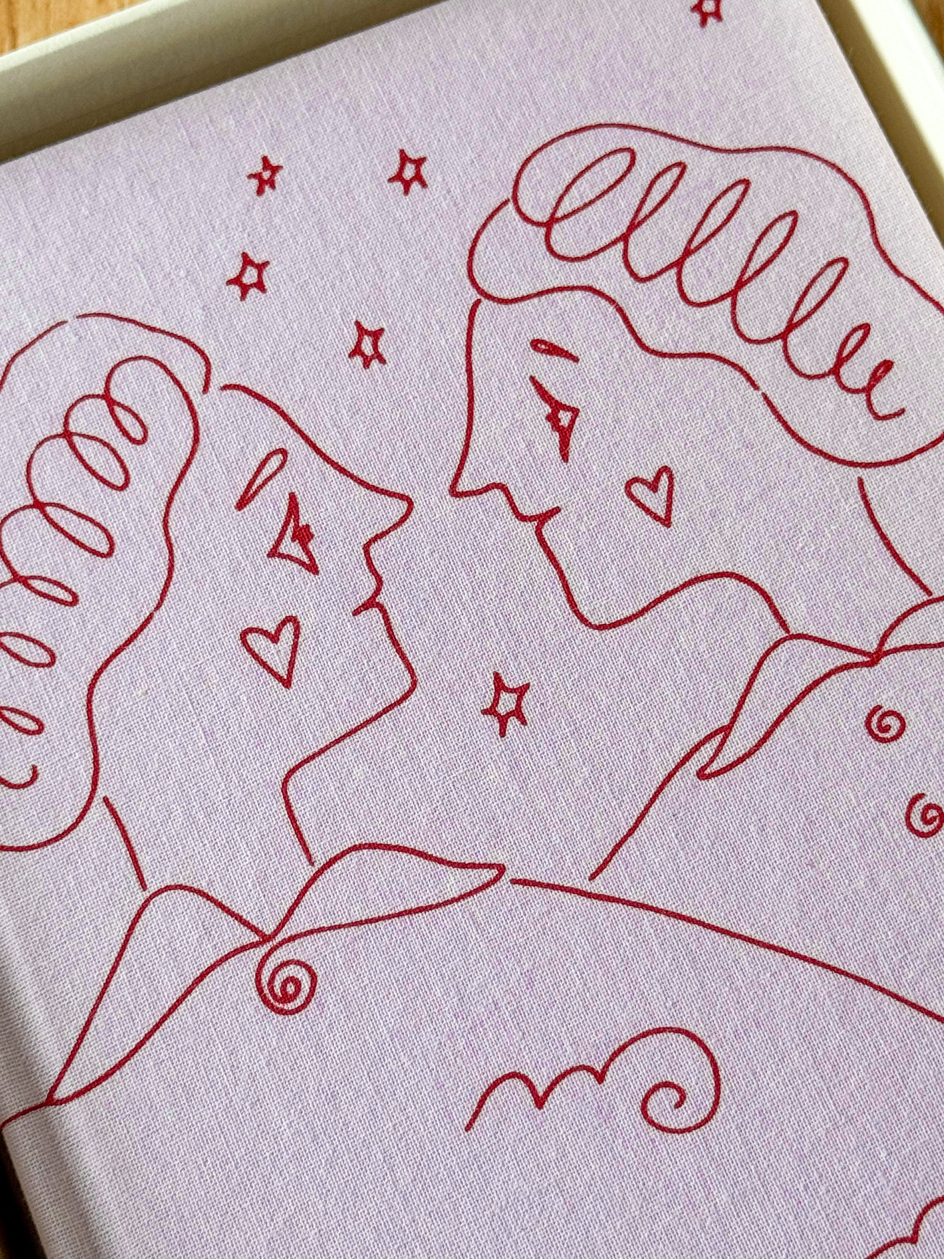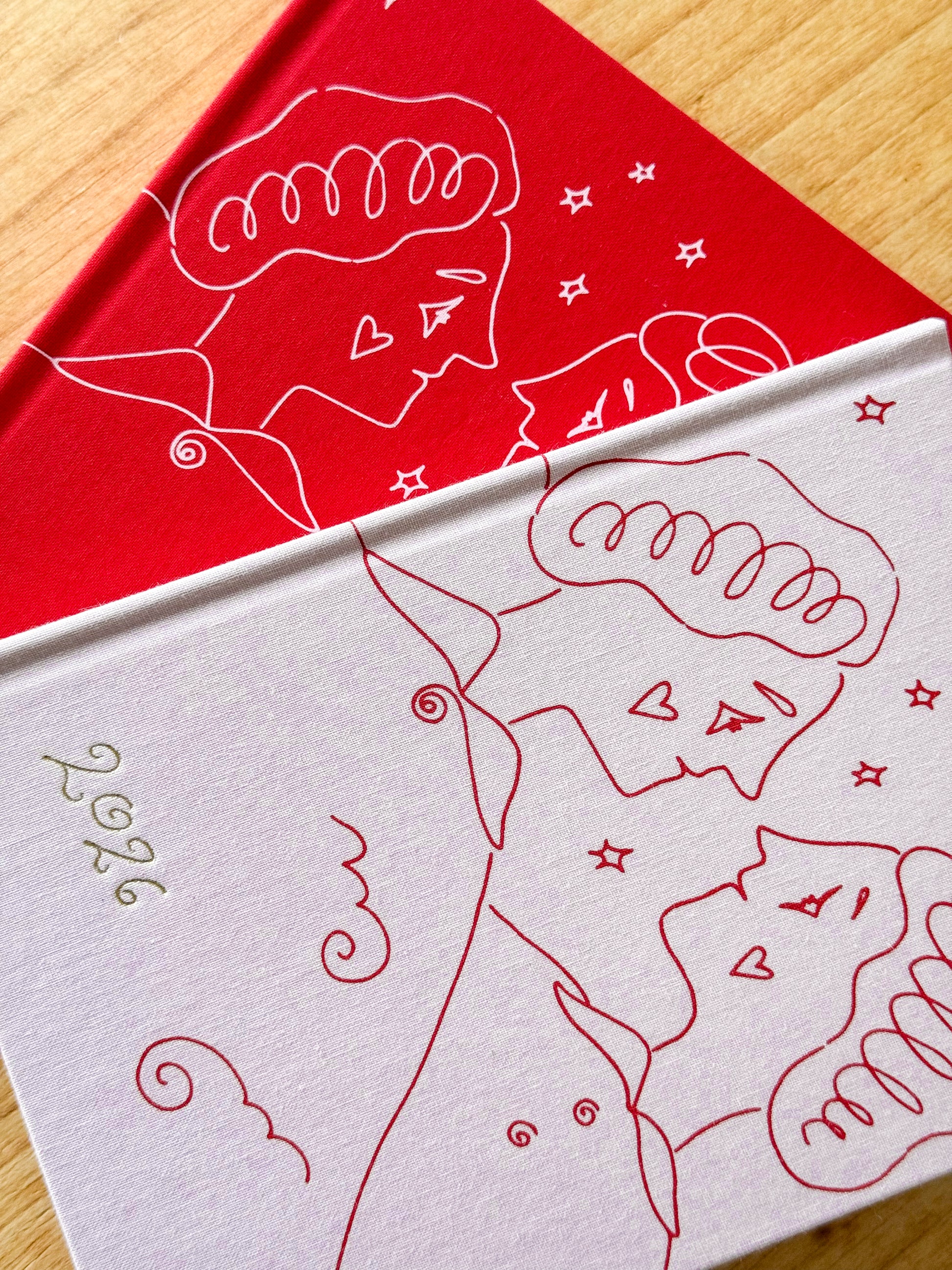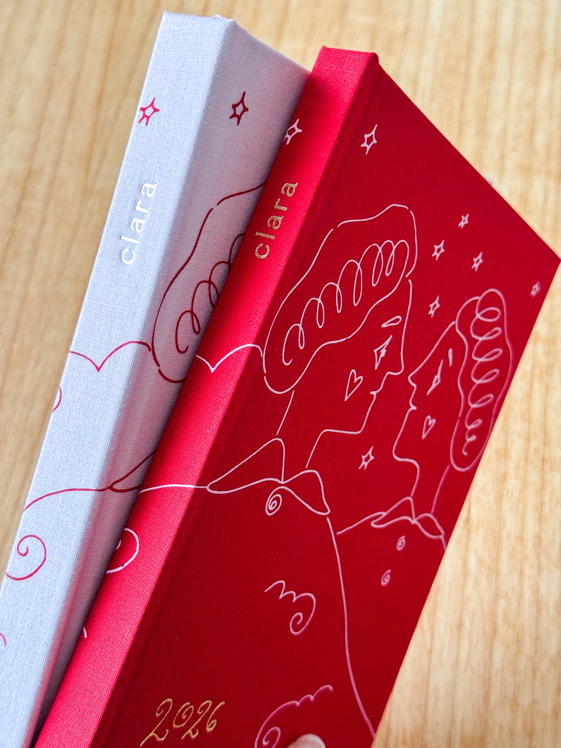 ☆ CEM POR CENTO FEITO À MÃO! ☆ Pelas minhas mãos e pelas dos meus braços direitos, na Vila Madalena, em São Paulo. Encadernado com tecido, ilustração estampada em serigrafia, com aplicações em hot stamping e miolo costurado, um a um. Capa vermelha ou rosa — você escolhe! Ah, e se quiser deixá-lo ainda mais com a sua cara, pode adicionar seu nome na lombada.