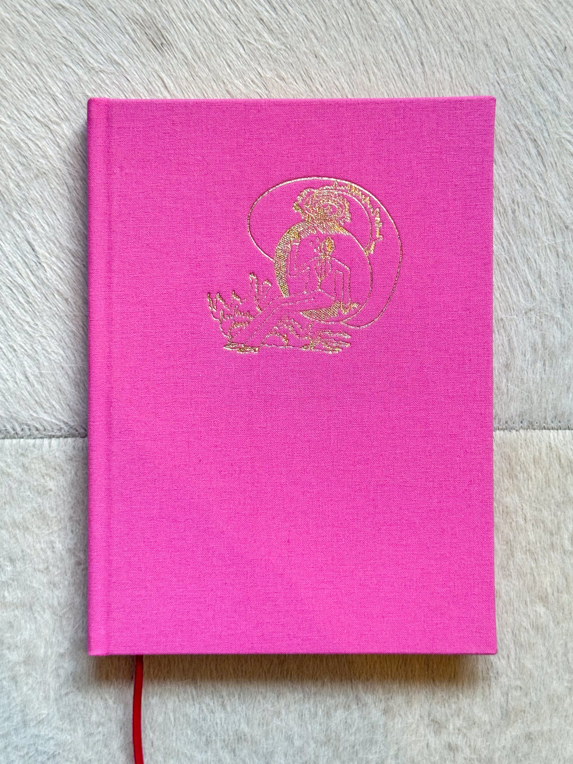 Esses cadernos foram feito manualmente por mim, e possuem lombada rígida e costura do miolo costurado à mão, de modo que a costura fica exposta entre as páginas. Na capa, conta com uma gravura estampada através de hotstamping, com um dos meus desenhos!