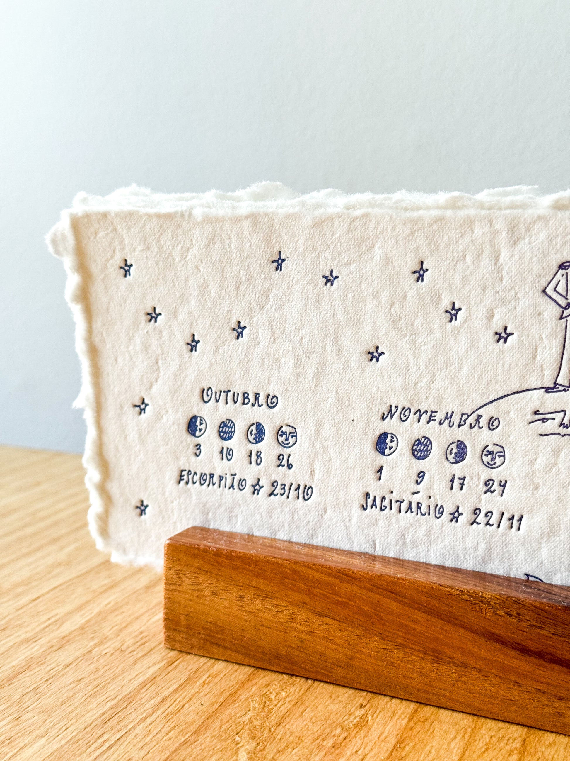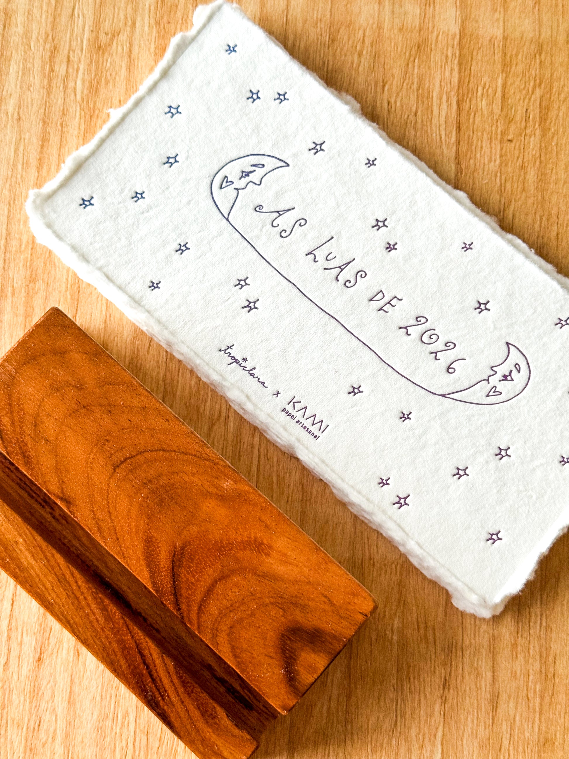 Um calendário de luas num papel de nuvem. Desenvolvido com minha parceira Kami Papel Artesanal, esse calendário de mesa é meu sonho que saiu do papel (literalmente!).