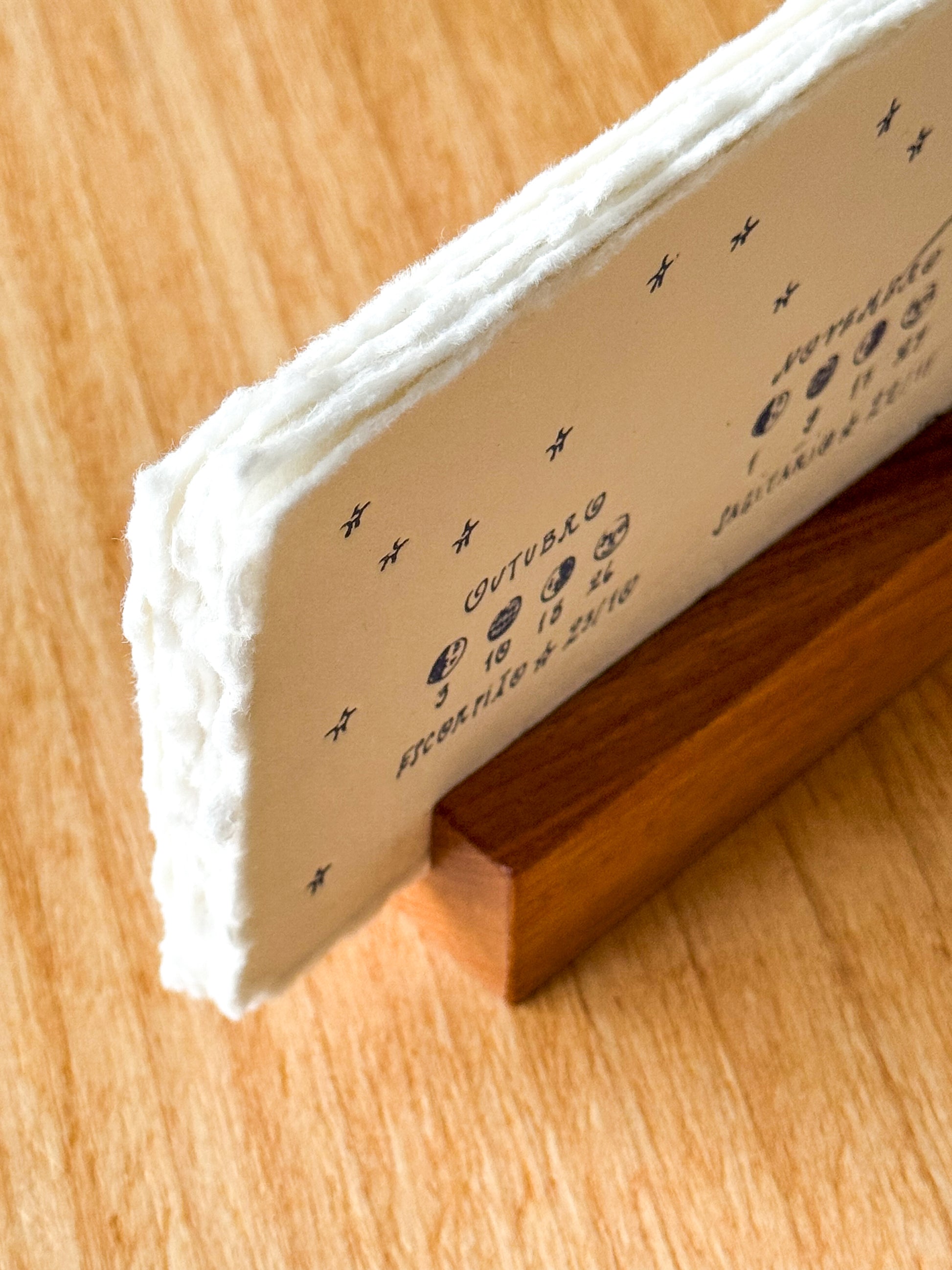 Esse calendário é trimestral e acompanha uma base de madeira, para manter as folhas em pé. Em 2027, é só comprar o refil ☆