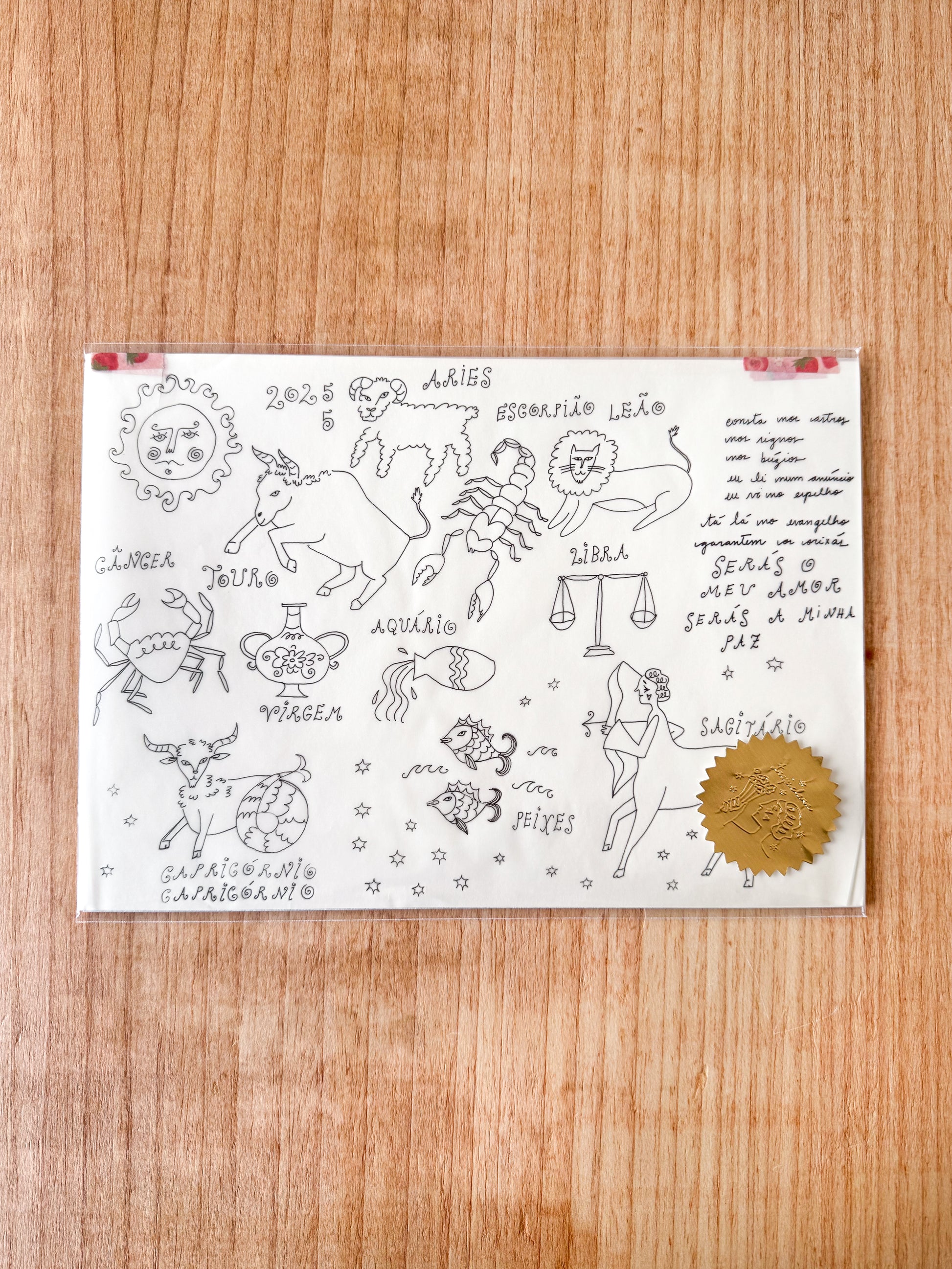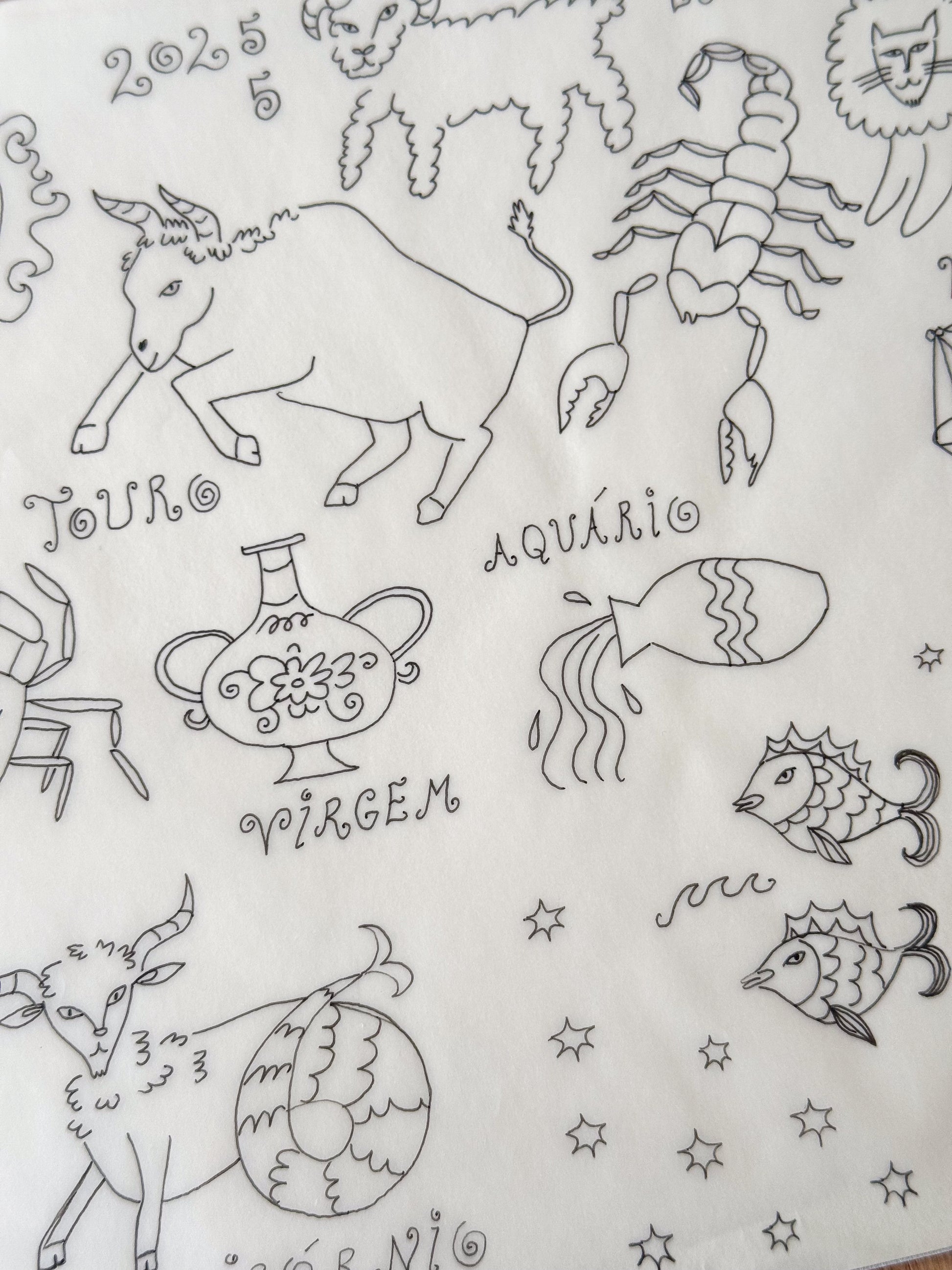Esboço feito com caneta nankin em papel vegetal. Essas ilustrações fazem parte de estudos para composição de outras peças dentro da temática "Astros".