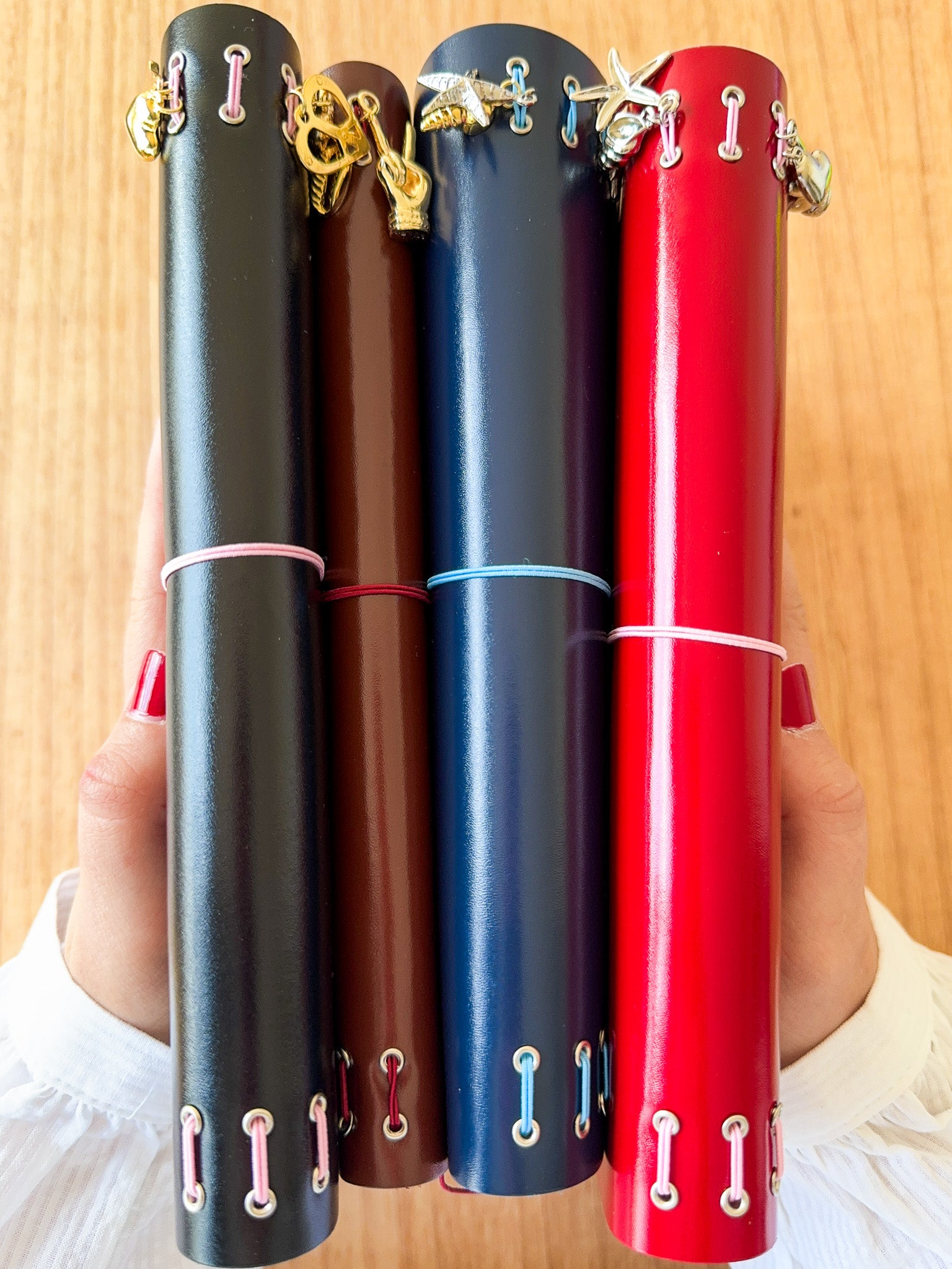 Modular e com refil, o tamanho A5 comporta até seis cadernos: três A5 e três A6. Esse modelo já acompanha três cadernos A5, e você pode escolher entre os miolos sem pauta, pautado, pontilhado, quadriculado, ou unir o útil ao agradável optando por um miolo de agenda ou planner :)